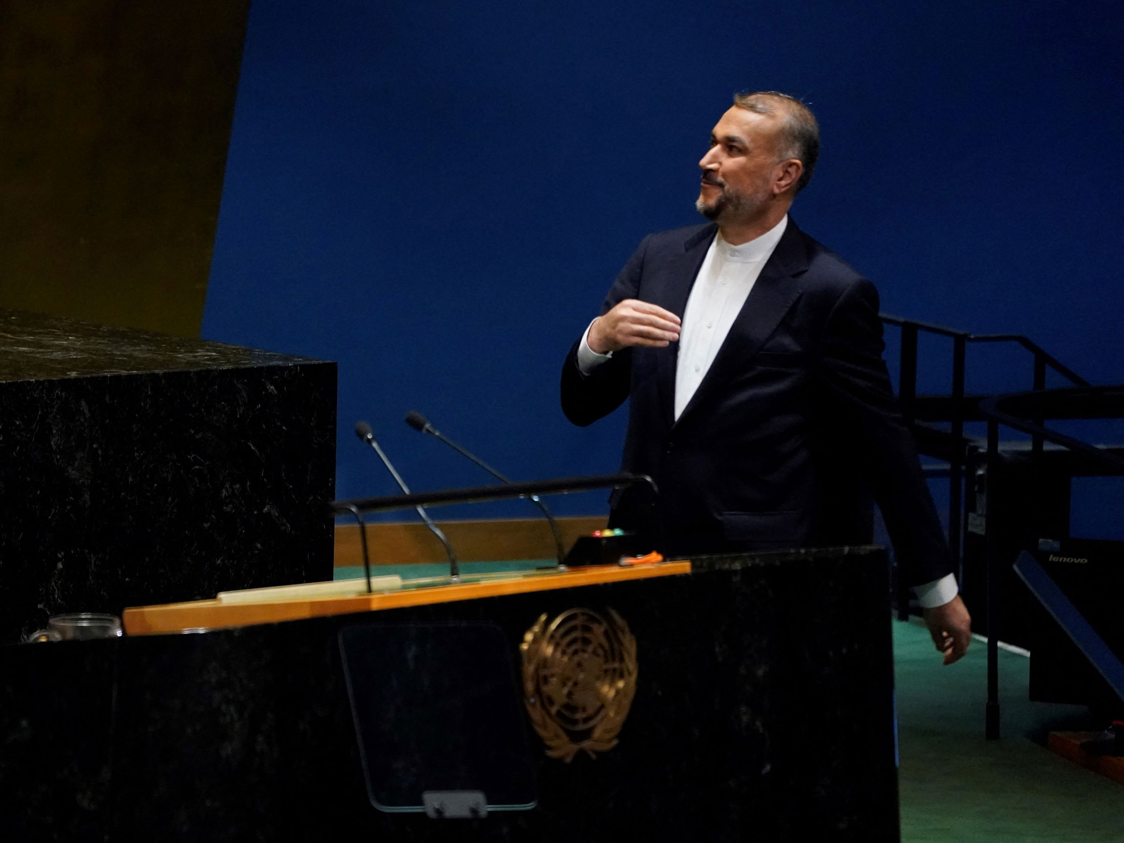 外长侯赛因·阿米尔阿卜杜拉汉在联合国大会上发表讲话时发出威胁,他用英语发表讲话,指责美国对巴勒斯坦人实施“种族灭绝”。
