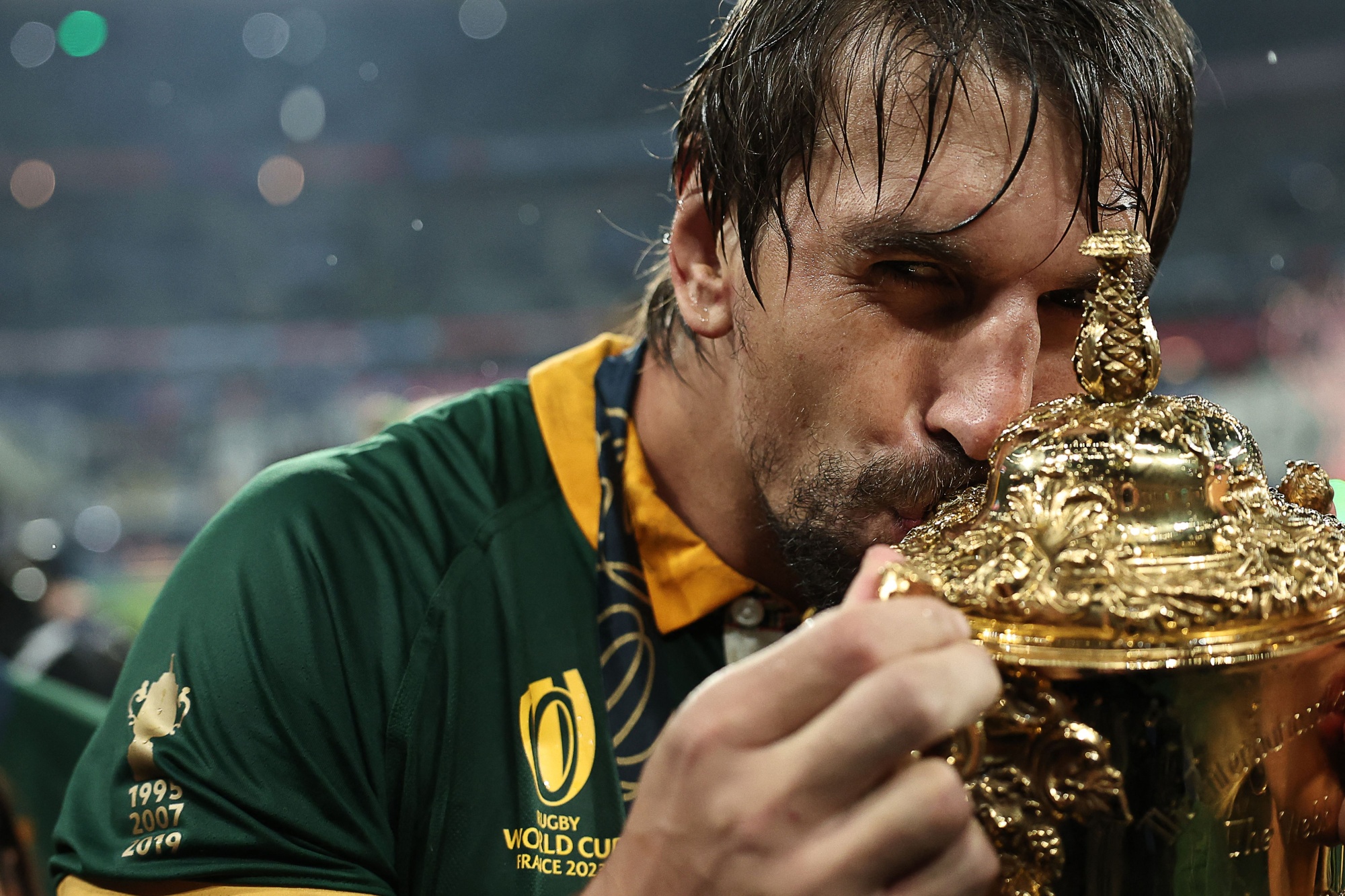 埃本·埃茨贝特亲吻韦伯·埃利斯杯,南非庆祝赢得2023年橄榄球世界杯决赛在巴黎举行。摄影师:弗朗克·菲夫/法新社通过盖蒂图片社**最后,**向新西兰表示慰问,向南非在橄榄球世界杯决赛中获胜表示祝贺。对于一个正面临如此多困难的国家来说,这是一个值得欢迎的喜悦时刻。
