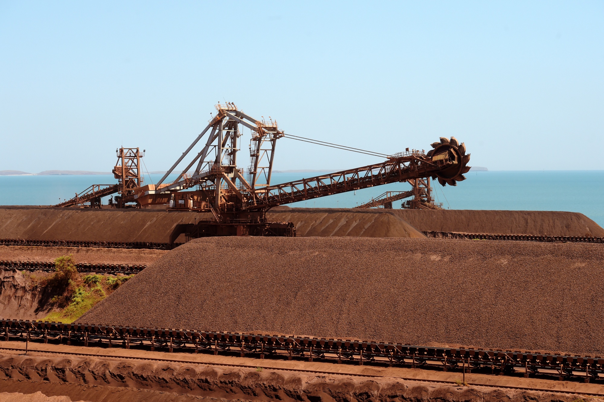 力拓在西澳大利亚卡拉瑟港设施的铁矿石库存。摄影师:Carla Gottgens/Bloomberg**重要的资源。**1966年,力拓从西澳大利亚偏远的皮尔巴拉地区首次运出铁矿石,开启了一个为该国创造了近1万亿美元出口的繁荣时期。现在,该地区传奇般的资源正面临着戏剧性的命运改变。