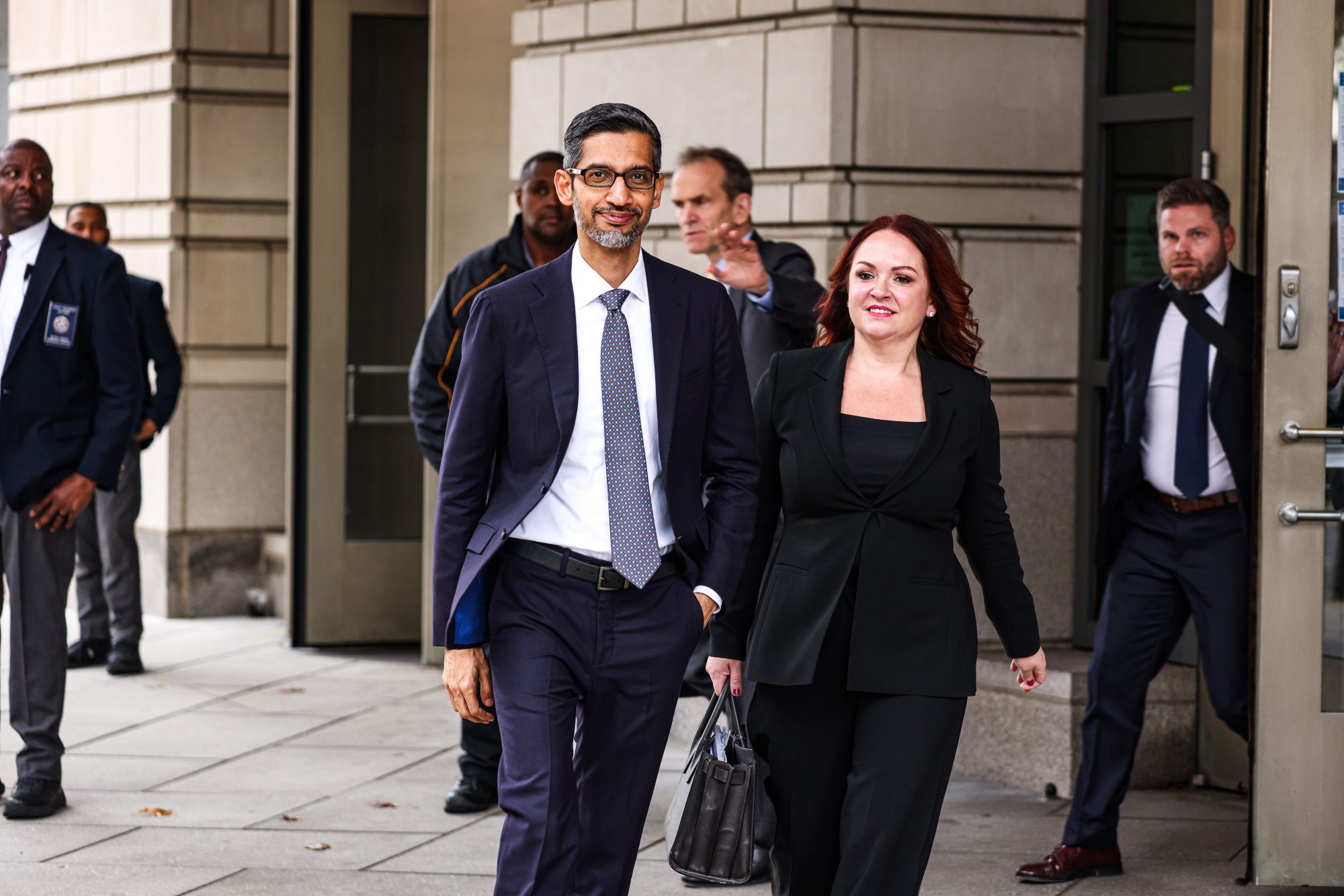 桑达尔·皮查伊在10月30日离开华盛顿特区的联邦法院。摄影师:瓦莱丽·普莱什/彭博社谷歌渴望“展望由人工智能带来的机遇,我们对此感到非常兴奋和自信,”字母母公司首席执行官桑达尔·皮查伊在公司上周公布第三季度财报时表示。