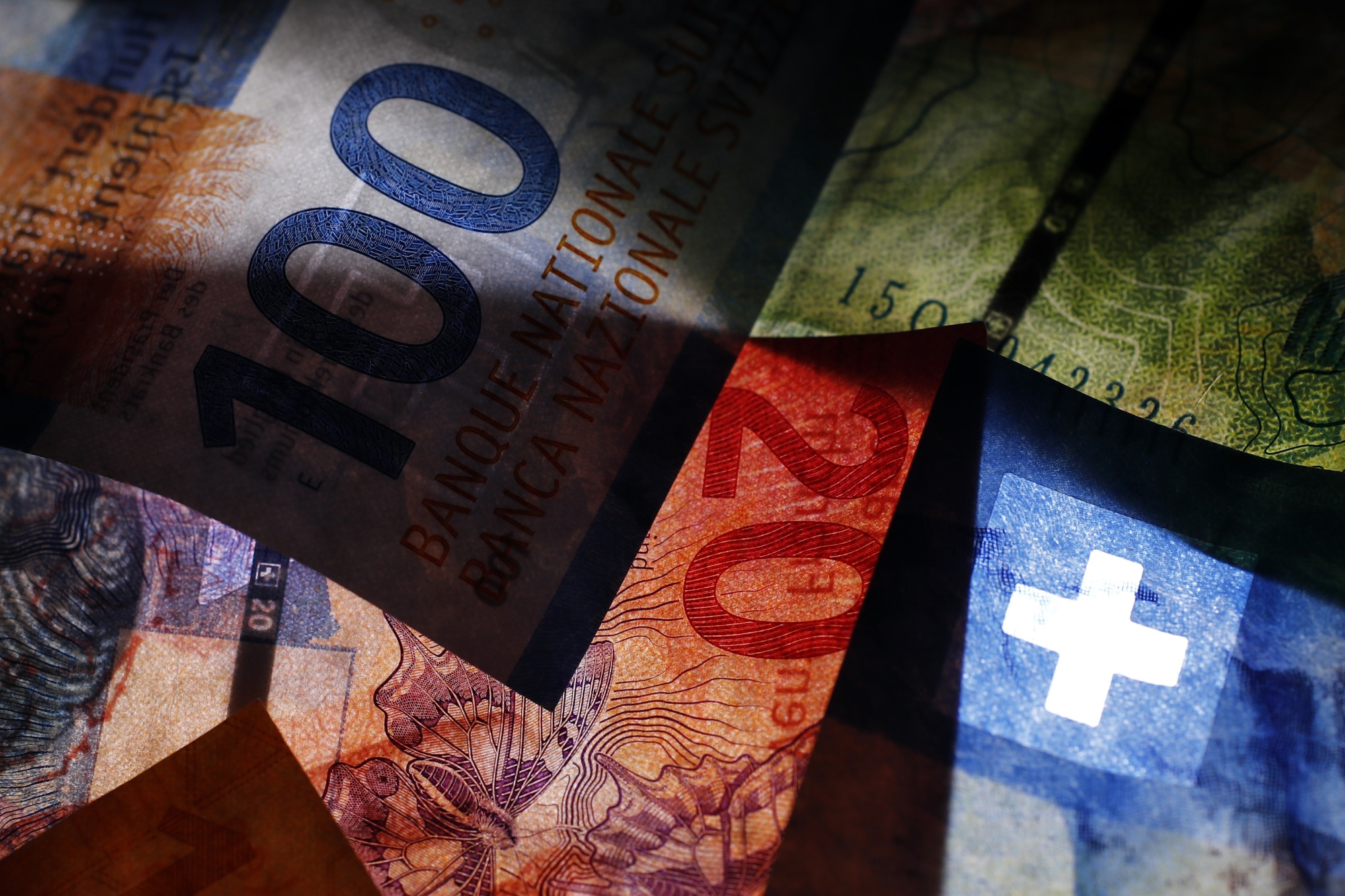 瑞士法郎纸币。