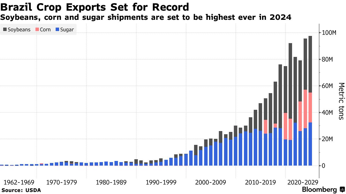 大豆和玉米的大丰收与今年预计将创纪录的糖产量相吻合。虽然更大的作物理论上应该有助于缓解全球糖供应短缺问题,这已经导致价格上涨至2011年以来的最高水平,但上个十年的拥堵情况仍使世界供应不足。