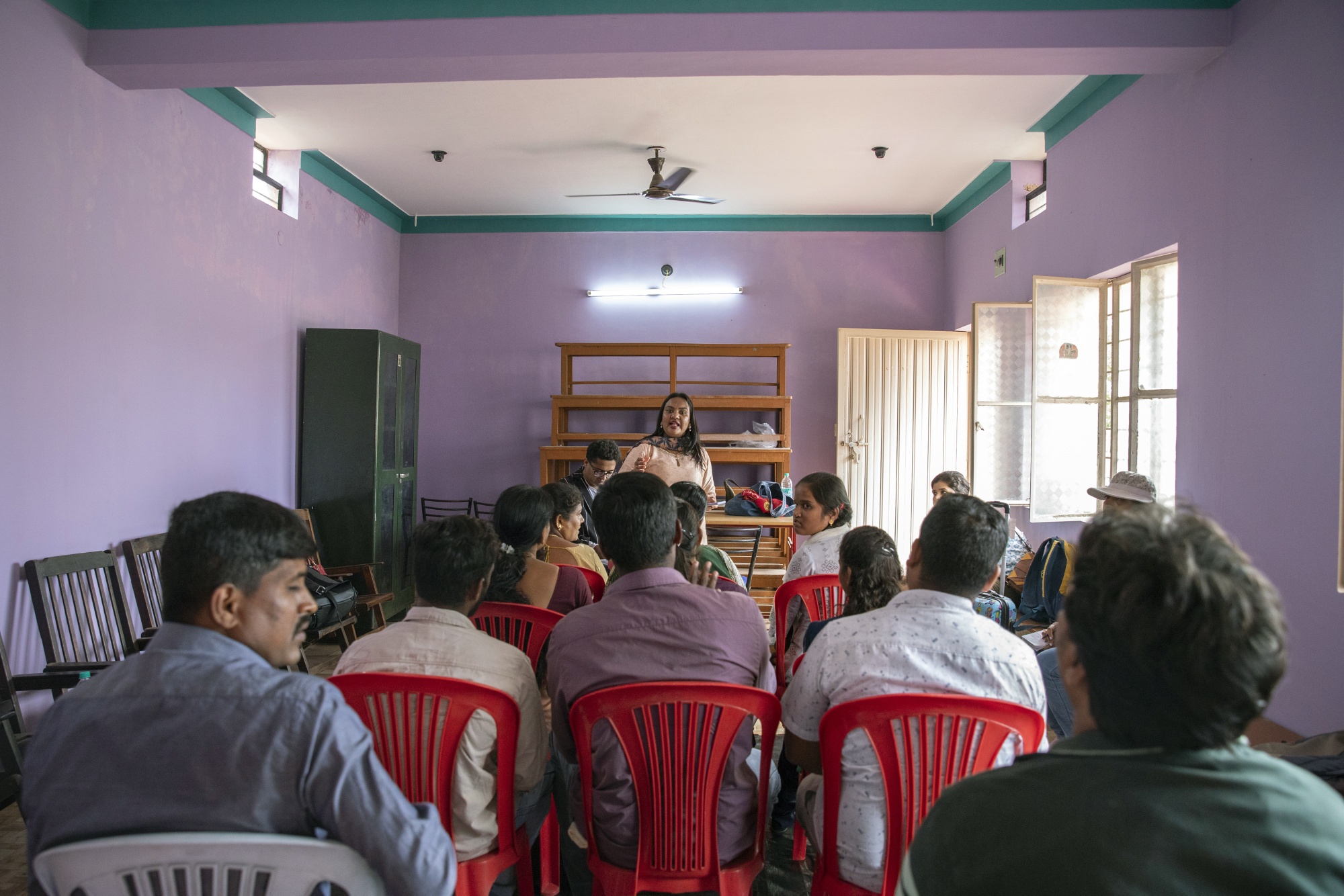 2017年毕业后,他开始着手他长期以来的兴趣:利用技术来解决贫困问题。“仅需存款1500美元,就能让印度人有资格进入中产阶级,” Chopra说。“但贫困人口可能需要200年才能达到那个储蓄水平。”在Chamarajnagar的一个Karya培训中心。摄影师:Samyukta Lakshmi/Bloomberg