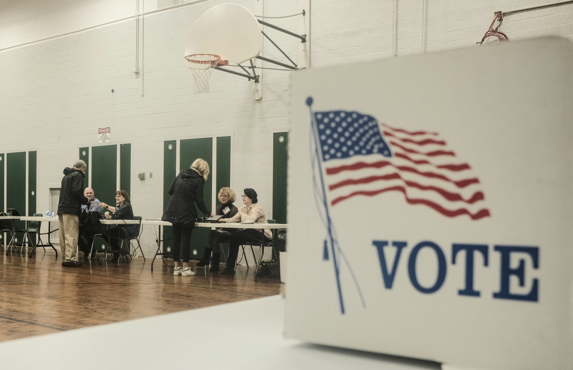 在2022年,俄亥俄州哥伦布的一个投票地点的选民。