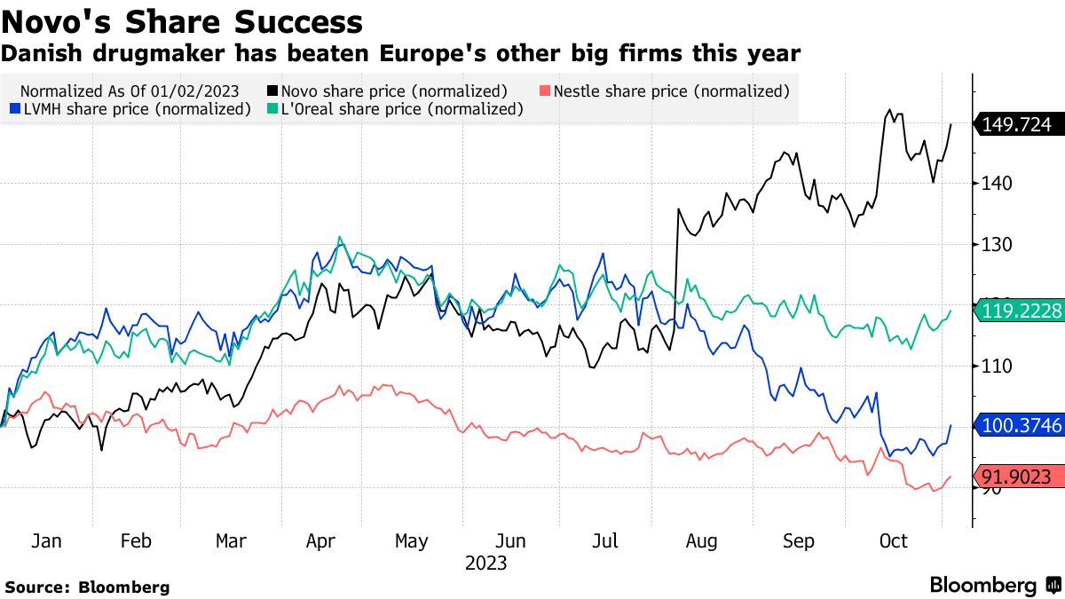 诺和诺德公司股价在早盘交易中上涨了超过3%。过去两年,该股几乎翻了一番,帮助该公司超越了雀巢、欧莱雅和奢侈品巨头LVMH,成为欧洲最有价值的公司。