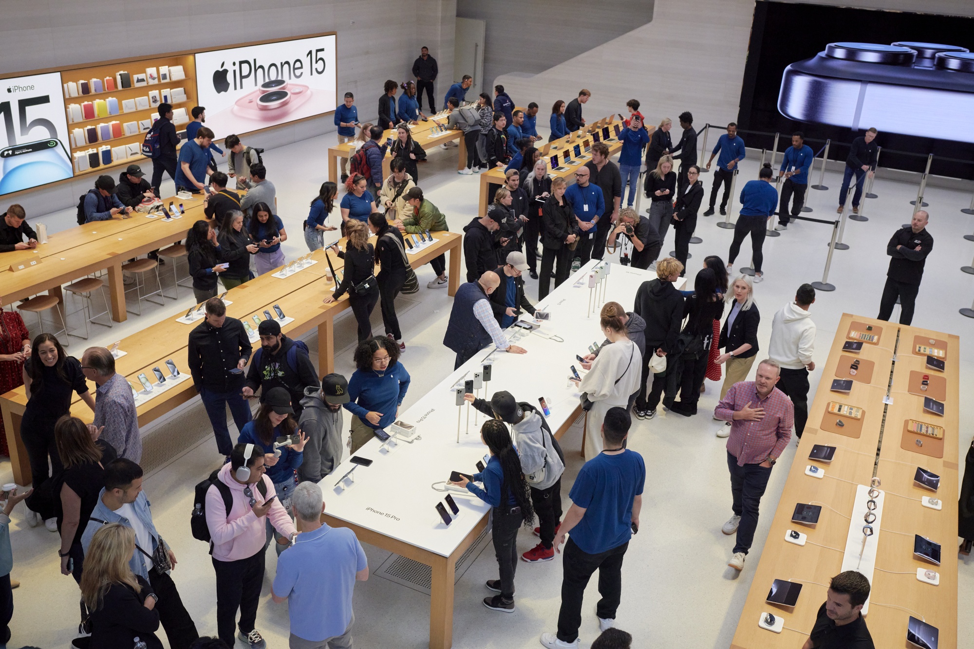 纽约第五大道苹果商店的购物者。摄影师:加比·琼斯/彭博社苹果公司需要一些东西来帮助恢复收入增长。在上周四的季度财报发布之前,华尔街相信该公司已经找到了:一个强劲的假日季节。