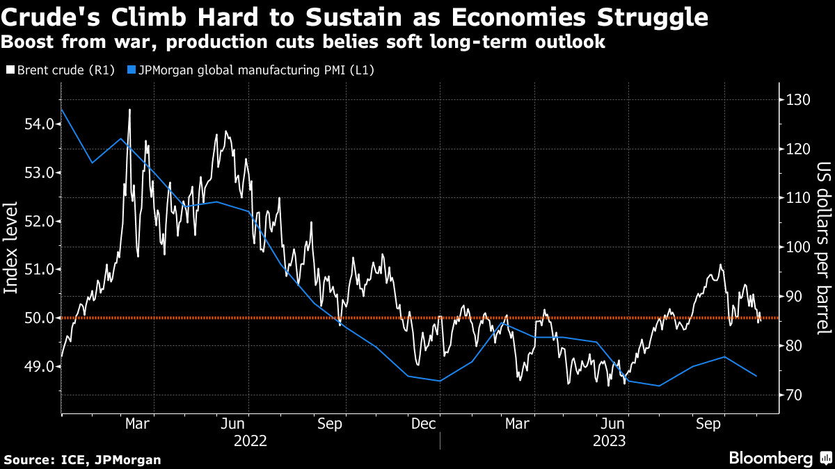 沙特阿拉伯和俄罗斯采取措施支撑疲软的油价,延长减产。这有助于凸显原油需求前景的疲软,以及全球增长前景的不佳。毕竟,考虑到俄罗斯入侵乌克兰已经实施的供应限制,以及对中东冲突的担忧,看到布伦特原油价格再次滑向每桶80美元,确实令人惊讶。