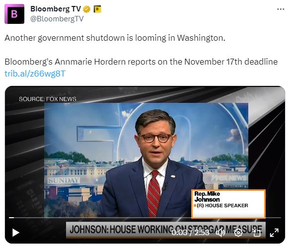 今天在彭博电视台的 权力平衡 节目中,主持人安玛丽·霍登和凯莉·莱因兹采访了联合国世界粮食计划署执行主任辛迪·麦凯恩,谈论以色列与哈马斯战争对难民的影响。早些时候在 彭博电视台,关注政府在11天内可能发生停摆的可能性。