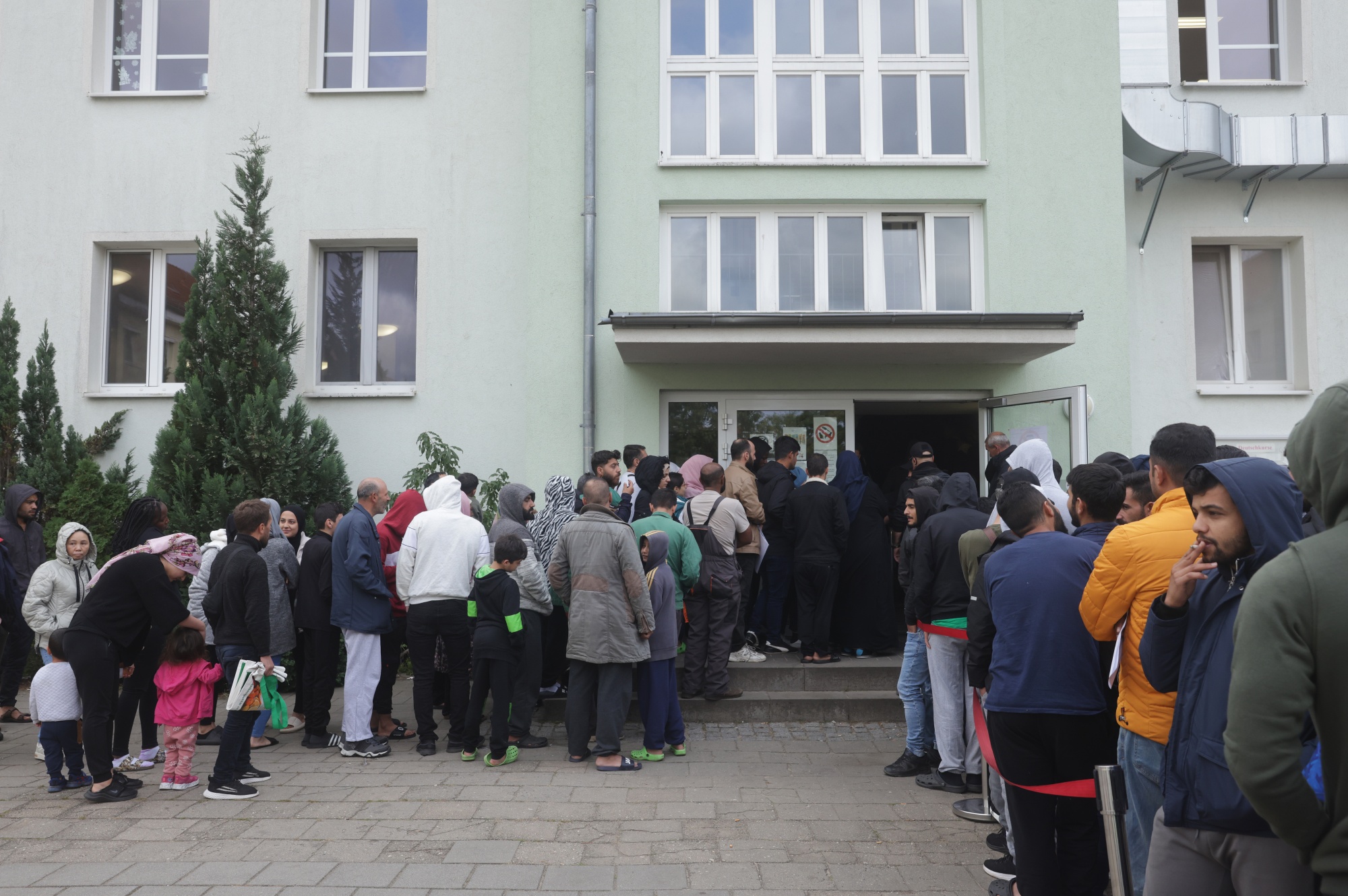 人们在德国埃森休滕施塔特的移民和难民初始接待设施排队等午餐,日期为10月5日。