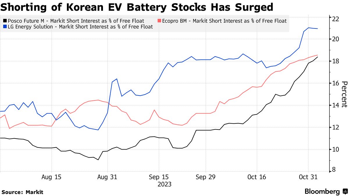 韩国综合股价指数Kospi收盘上涨5.7%,创下自2020年3月以来的最大涨幅,交易量激增。海外投资者在净基础上大量买入,表明资金正在平仓卖空头寸。最近遭受卖空增加的股票,包括LG Energy Solution Ltd.和Posco Future M Co.,是该基准指数涨幅最大的贡献者。小盘股韩国创业板指数上涨了7.3%。