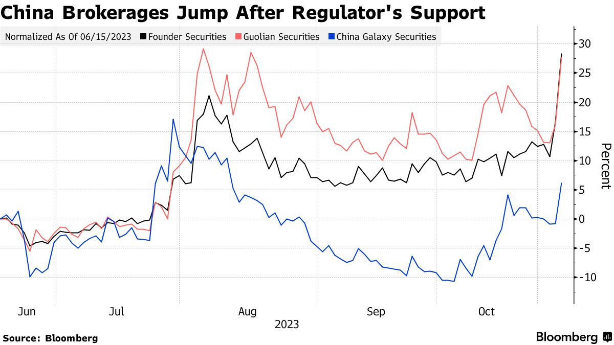 推动这一涨势的是国家证券监管机构提出的一项广泛提议,旨在放宽该行业的风险控制,旨在降低某些资产的资本要求,以便券商能够更多地利用其储备。此外,一份由一家顶级国有行业报纸发布的报告援引了对领先券商进行并购的监管支持。