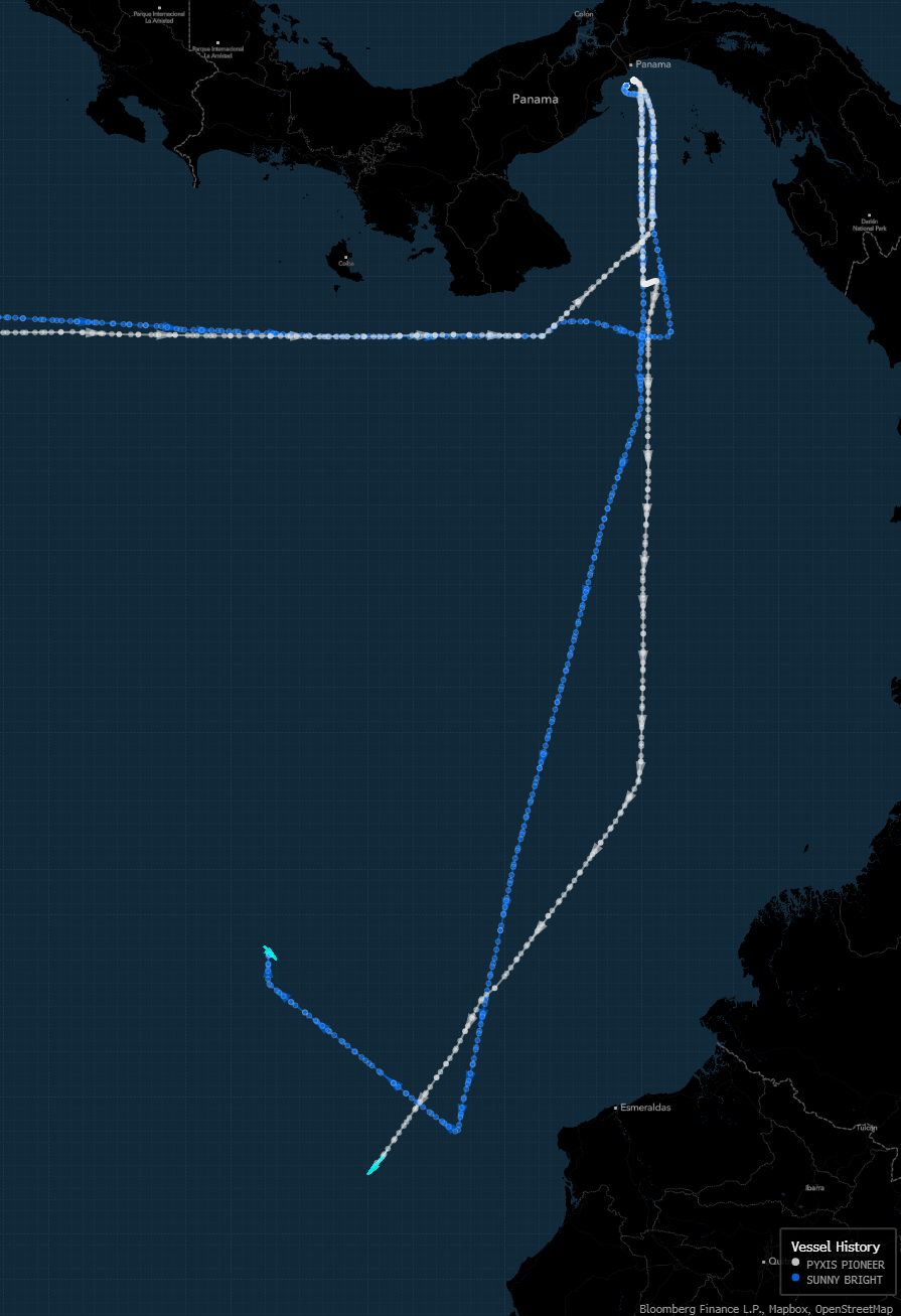 皮克西斯先锋号和阳光明媚号从巴拿马运河转移开来皮克西斯先锋号和阳光明媚号是空载的,已经向亚洲客户交付货物。
