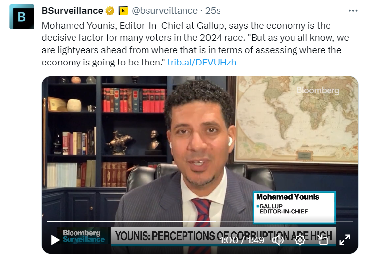 美国人今天正在接受一剂带有2024年意味的地方政治,盖洛普的穆罕默德·尤尼斯向我们介绍了一些国家主题,比如公众对两党的失望以及非选举年的特殊性质。
