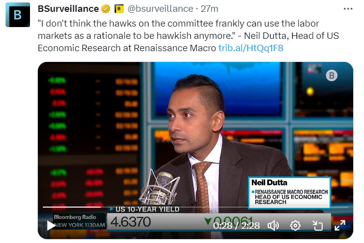 “对于鸽派来说,他们已经拥有基本可以让鹰派束手无策的所有弹药,”Dutta说。“我认为鸽派基本上可以说劳动力市场已经重新平衡。如果他们能这样说,仅仅是暗示,那就意味着降息的大门已经打开了一点点。”