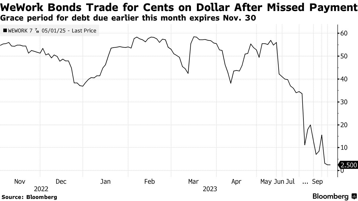 “WeWork的主要资产是与客户签订的租赁合同,其主要负债是与房东签订的租赁合同,”CreditSights特殊情况分析师Evan DuFaux表示。“这意味着公司很可能会在第11章破产重组,并继续运营以为债券持有人提供任何有意义的回报。”