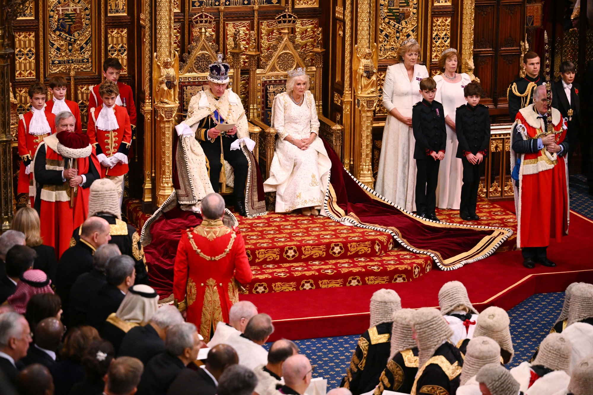 查尔斯三世国王和卡米拉王后在11月7日的国会开幕式上。