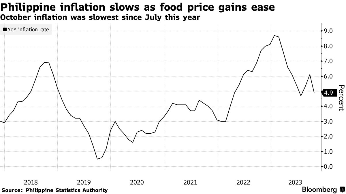 菲律宾通胀在十月放缓,这可能导致央行暂停行动 - 彭博社