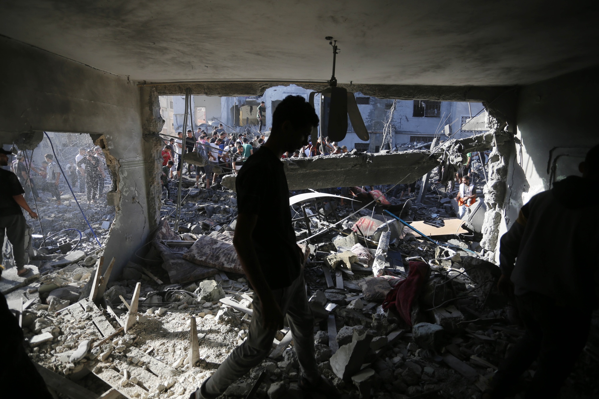 加沙一座建筑遭到空袭后的搜救行动。摄影师:Ashraf Amra/Anadolu/Getty Images### 以色列部队向加沙市中心推进,Gallant说(晚上8:15)