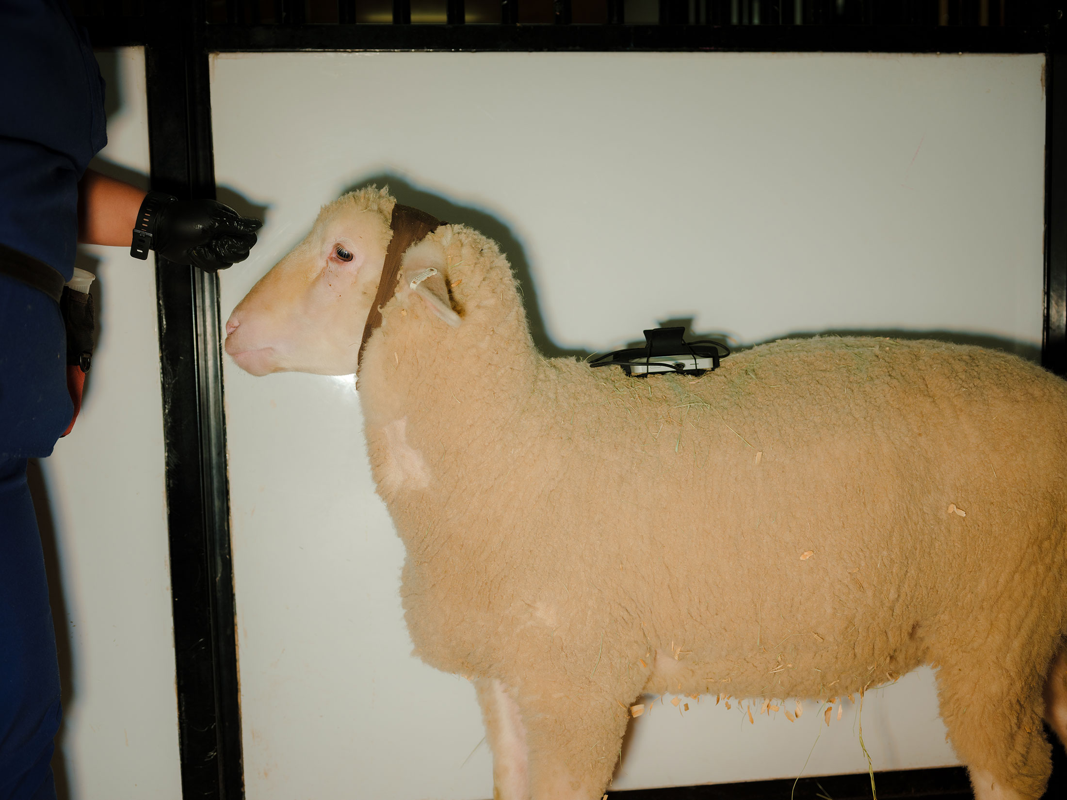 一只装有该初创公司植入物和电池组的绵羊。摄影师:达米安·马洛尼(Damien Maloney)为彭博商业周刊拍摄
