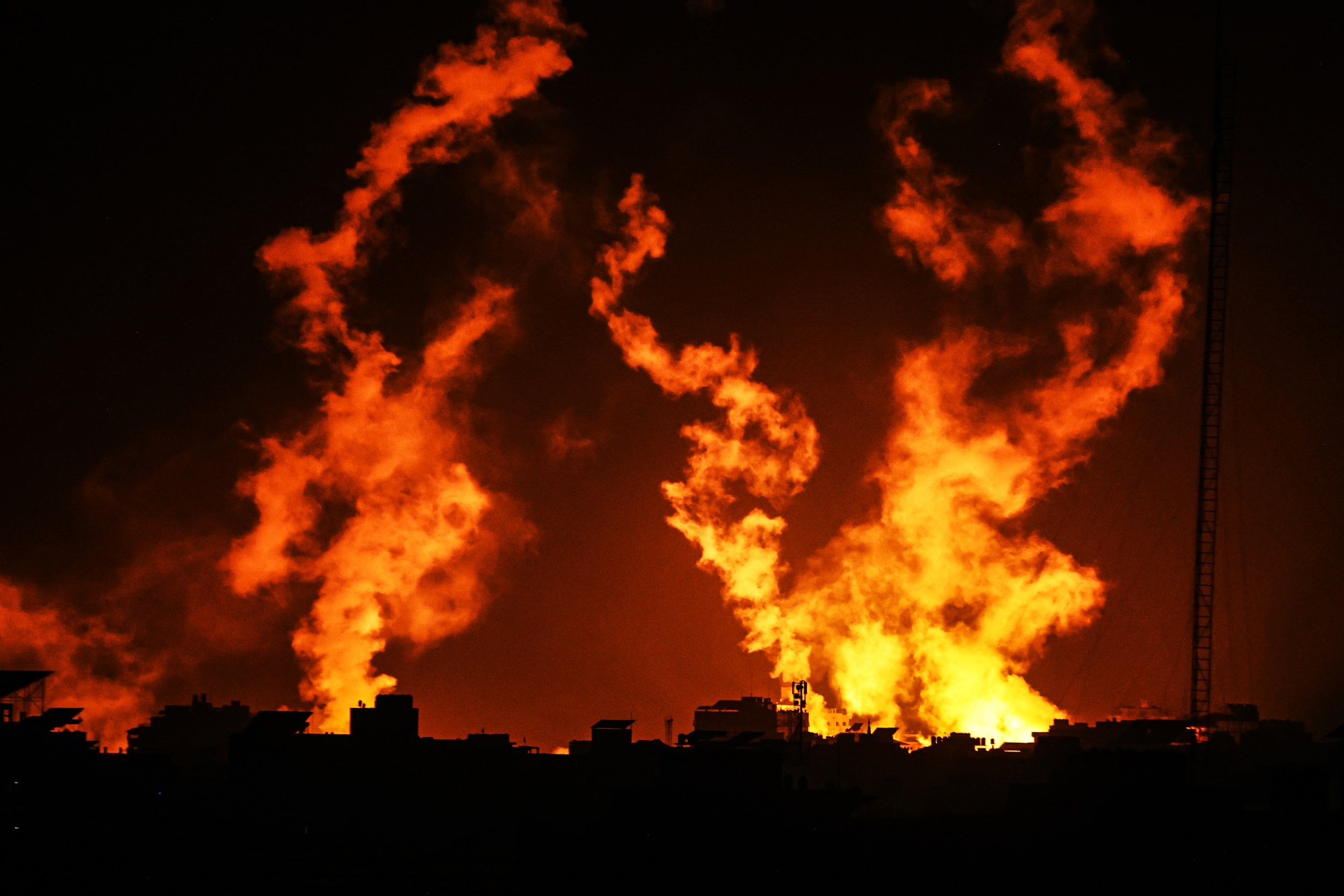与此同时,逃离以色列的炸弹变得更加危险,因为以色列军队在坦克炮击和空袭声中进入了加沙地带,包围了加沙城,并将该地区分为两部分。