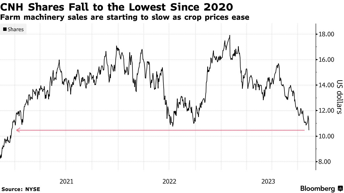 CNH(CNHI)股价下跌,因销售放缓导致裁员 - 彭博报道