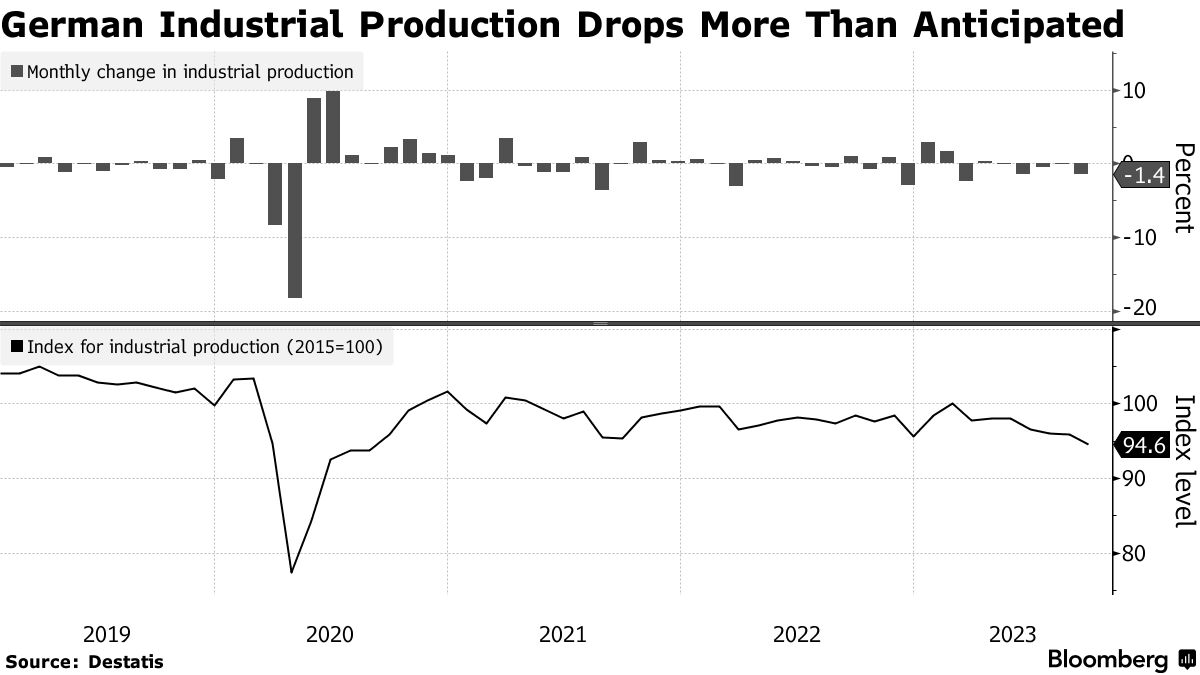 德国工业在经济衰退风险加剧的情况下收缩超出预期 - 彭博社