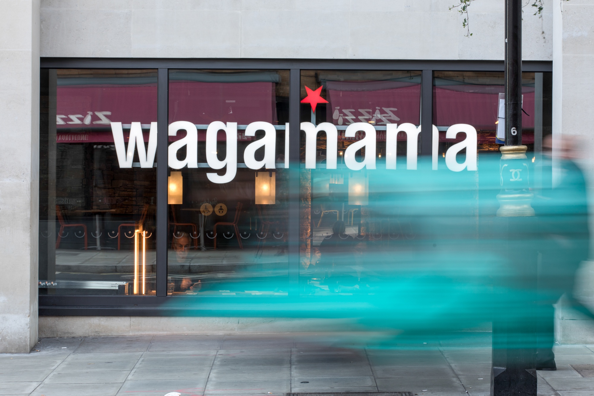 行人经过伦敦的一家Wagamama Ltd.餐厅。