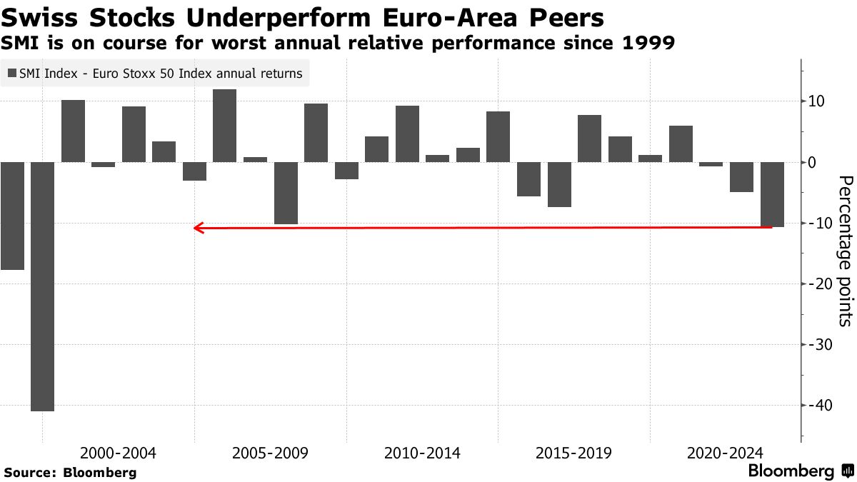 瑞士股票自1999年以来落后于欧元区同行-彭博社