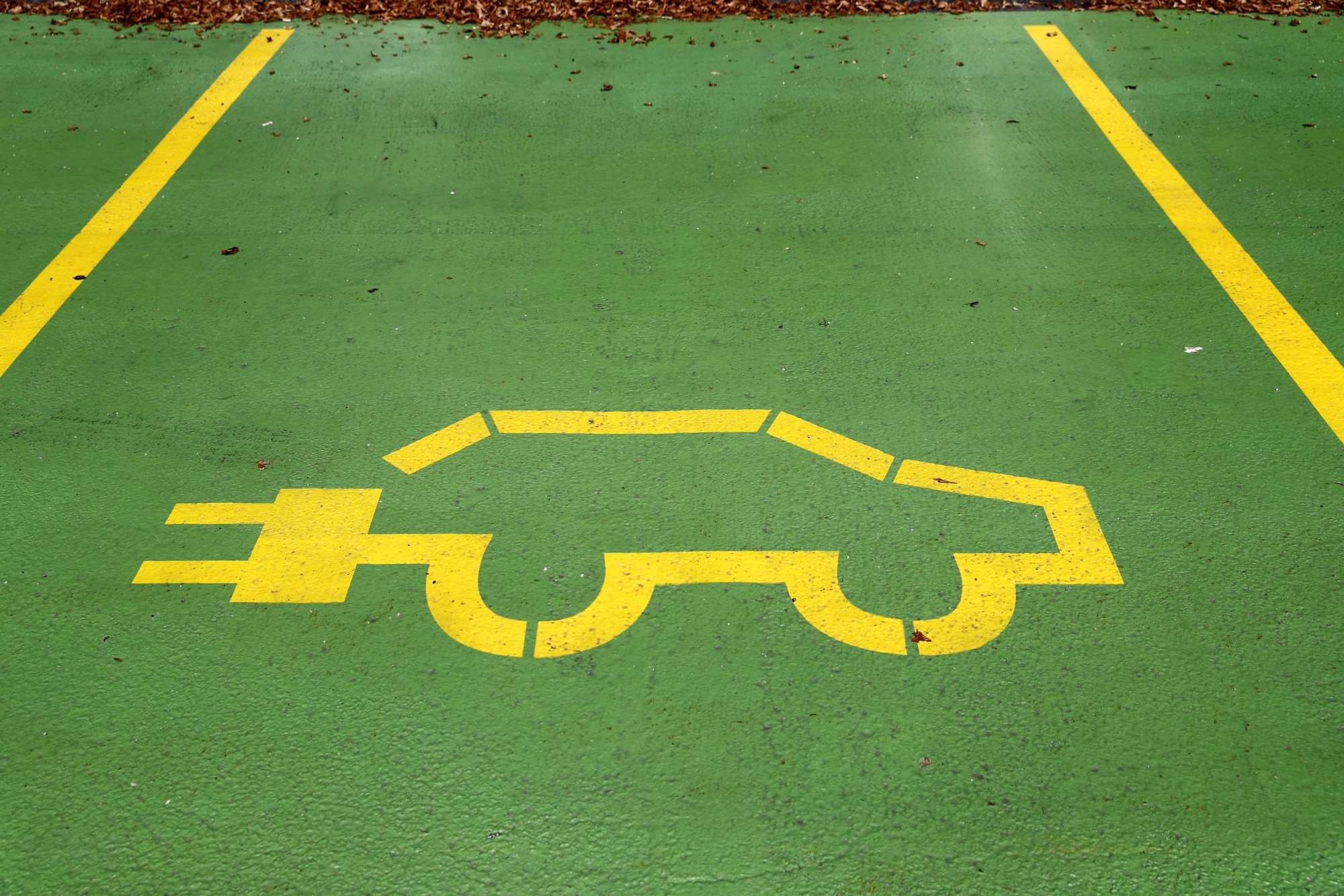 瑞士埃格金根的一个超级充电站上的电动汽车图标。