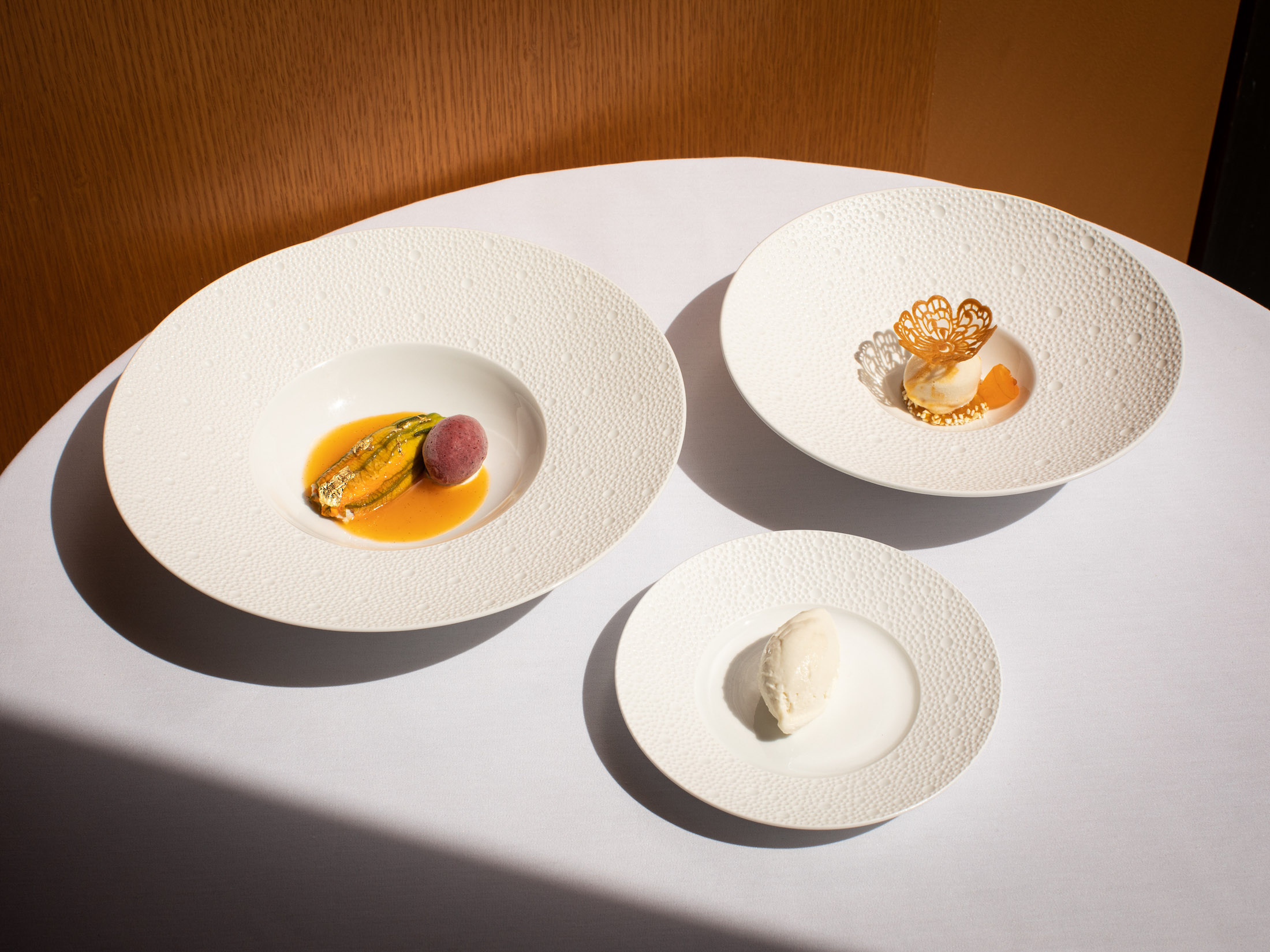 纽约的Le Bernardin餐厅提供各种甜点,保持了三星评级。摄影师:Clay Williams### 三星