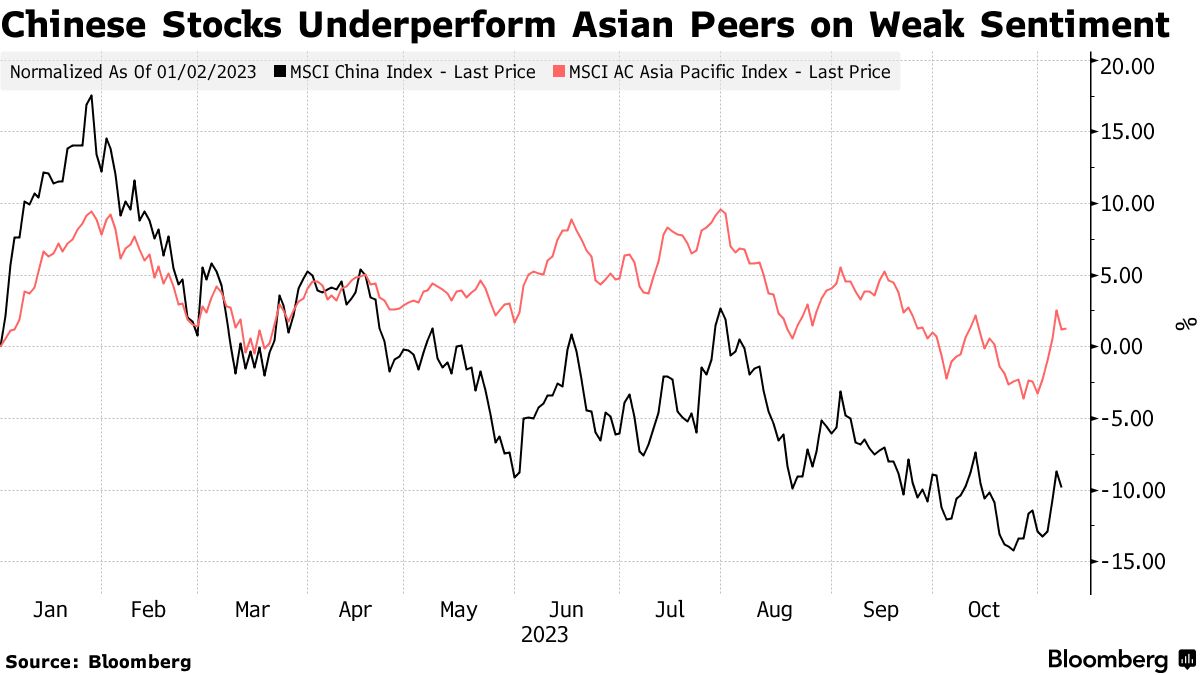 中国股市正受到多年来的债务危机和外国资金外流的打击,外国投资者正在以自2015年以来最快的速度撤资。MSCI中国指数今年已下跌近10%,属于全球表现最差的股市之一。