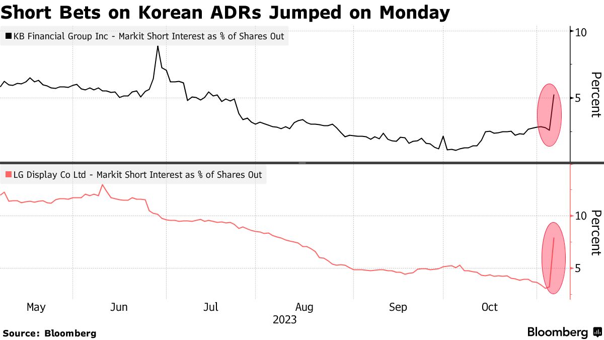 在韩国,空头交易者被取缔,目标转向ADR作为替代方案 - 彭博社