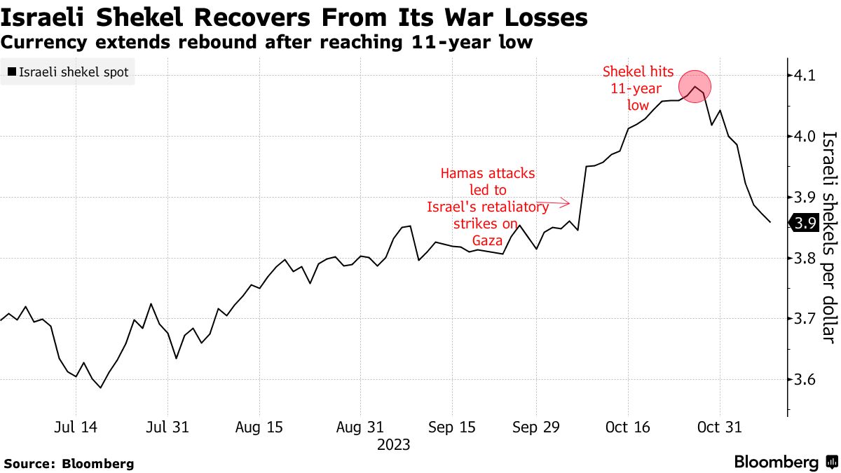 以色列谢克尔(USD ILS)上涨至超过战前水平 - 彭博社