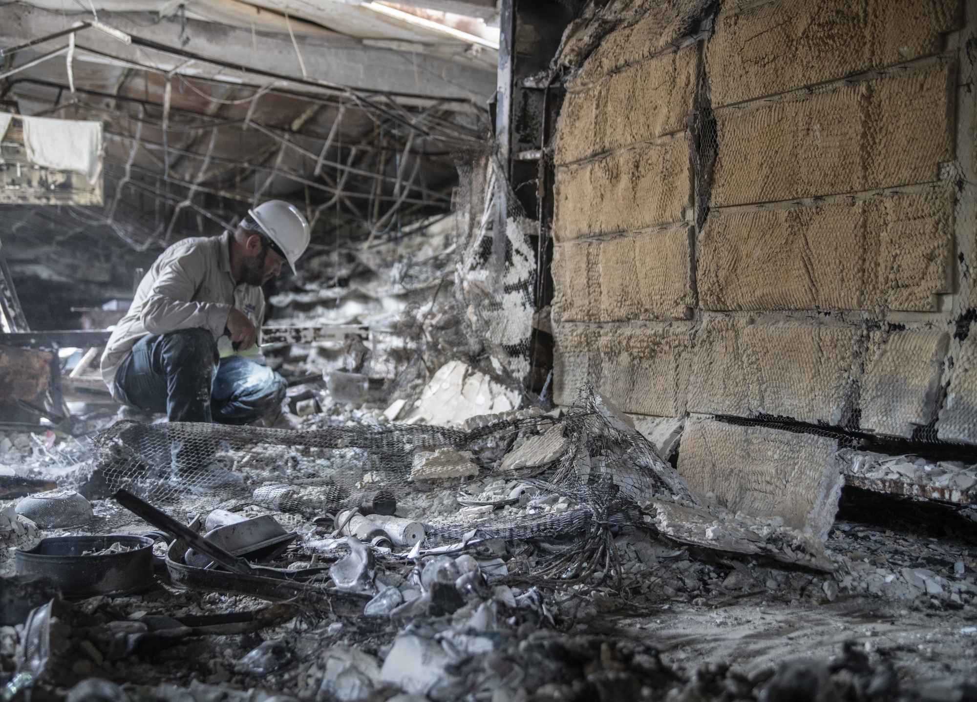 一位考古学家在基布兹尼尔奥兹的一座建筑物中检查烧焦的残骸。摄影师:以色列古物管理局的沙伊·哈莱维“我们看到了任何人都不应该看到的事情,”考古学家阿贾米说道。发生的事情将被一代又一代人铭记,他说。“整个世界都应该意识到这一点。”