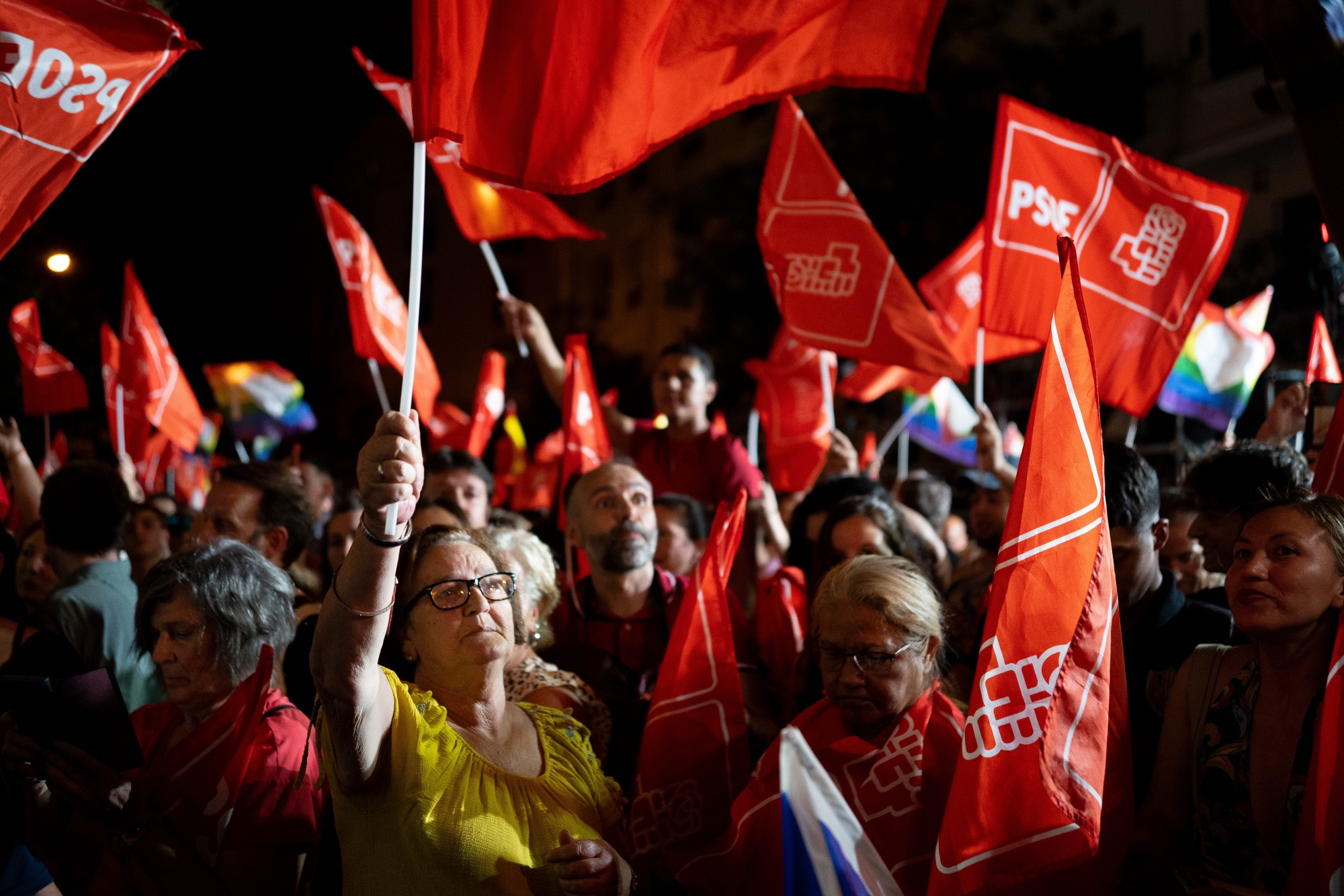 西班牙总理佩德罗·桑切斯的支持者在7月23日的马德里。