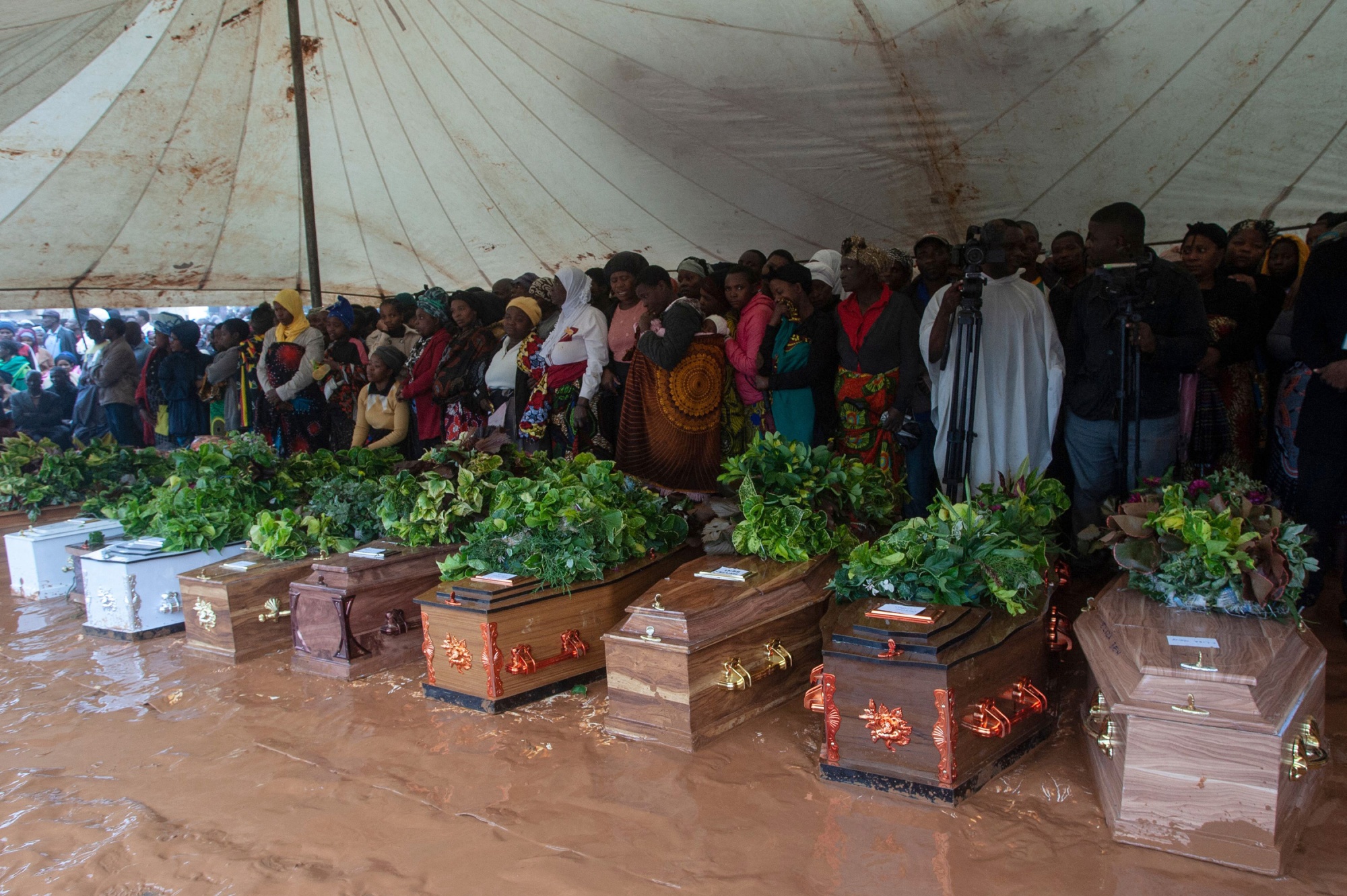 在马拉维的布兰太雷,悼念者们在3月15日为泥石流受害者举行大规模葬礼。摄影师:阿莫斯·古穆利拉/法新社/盖蒂图片社在二月和三月,异常强大且持续时间长的强热带气旋弗雷迪引发了马拉维、莫桑比克和马达加斯加的洪水、山体滑坡和强风,造成了200多人死亡。气候变化使暴雨更加猛烈,气旋更加强烈,这是由于海洋变暖增加的能量。总体而言,非洲今年迄今为止至少有15,700人死于极端天气,最近一场在非洲之角的干旱导致超过2300万人面临粮食不安全。