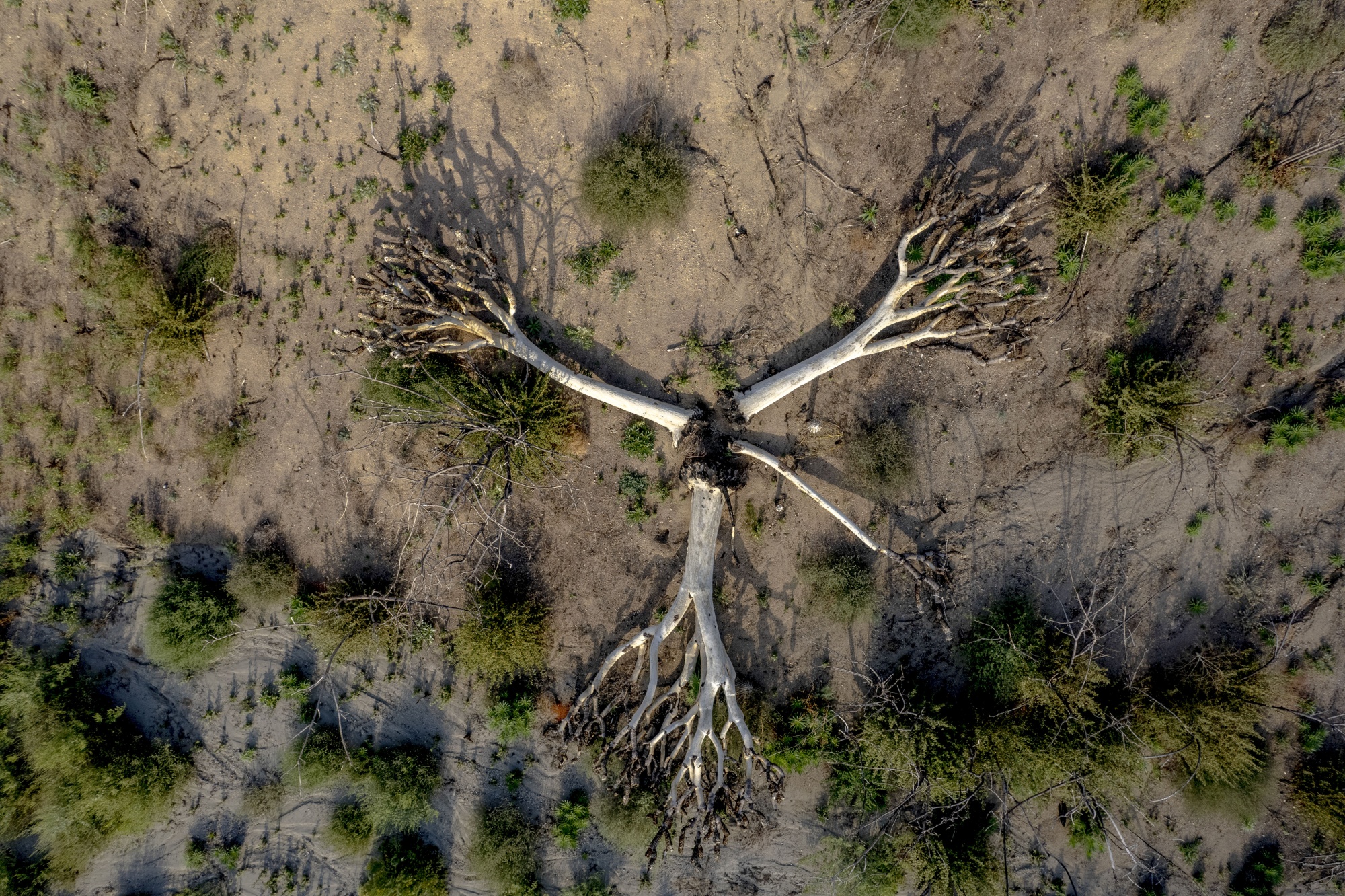 加利福尼亚怀特伍德 Wrightwood 中被烧毁的约书亚树,拍摄于9月14日。加利福尼亚标志性的约书亚树已经受到了在莫哈韦沙漠 Mojave Desert 烧毁数千英亩土地的野火的严重破坏。摄影师:Kyle Grillot/Bloomberg气候中心使用自己的指标Climate Shift Index分析了过去12个月的数据,该指标利用了模型和最近过去的数据来估计在有无人为气候变化影响下,特定温度会发生的频率。分析发现,在整个年度中,至少有90%的人经历了至少10天的温度,这些温度由气候变化造成的可能性至少增加了三倍。与前三十年的平均值相比,几乎每个人——99%的人口——在过去12个月中经历了更高的温度。