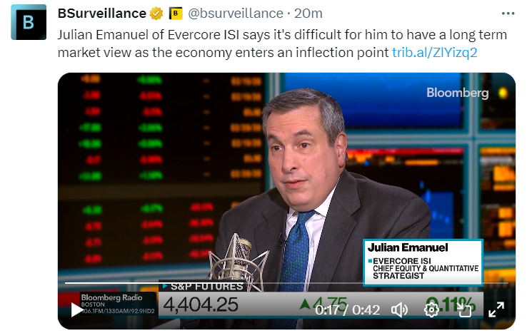 “由于我们正在讨论的内容——经济可能出现的拐点,长期展望变得非常困难,” Evercore ISI的朱利安·伊曼纽尔说。