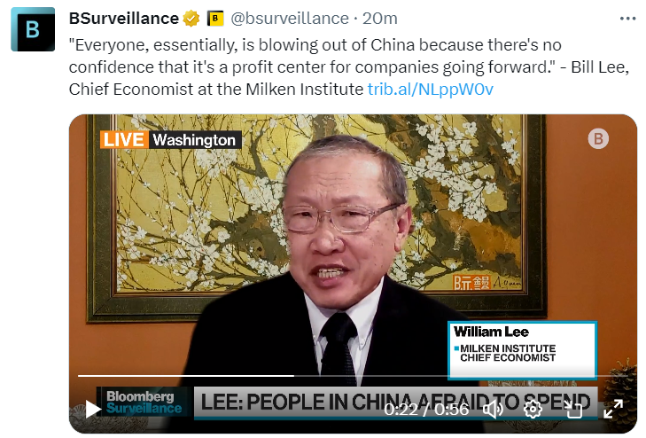 美林研究所的比尔·李在一份显示通货紧缩压力加剧的消费价格报告出炉后,带领我们深入了解中国经济。他嘲笑了有人认为猪肉,作为当地饮食的主食,正在扭曲数据的论点,因为猪肉价格正在下降。