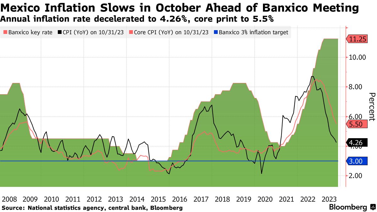 墨西哥通胀率创32个月新低,墨西哥央行就利率问题举行会议 - 彭博社