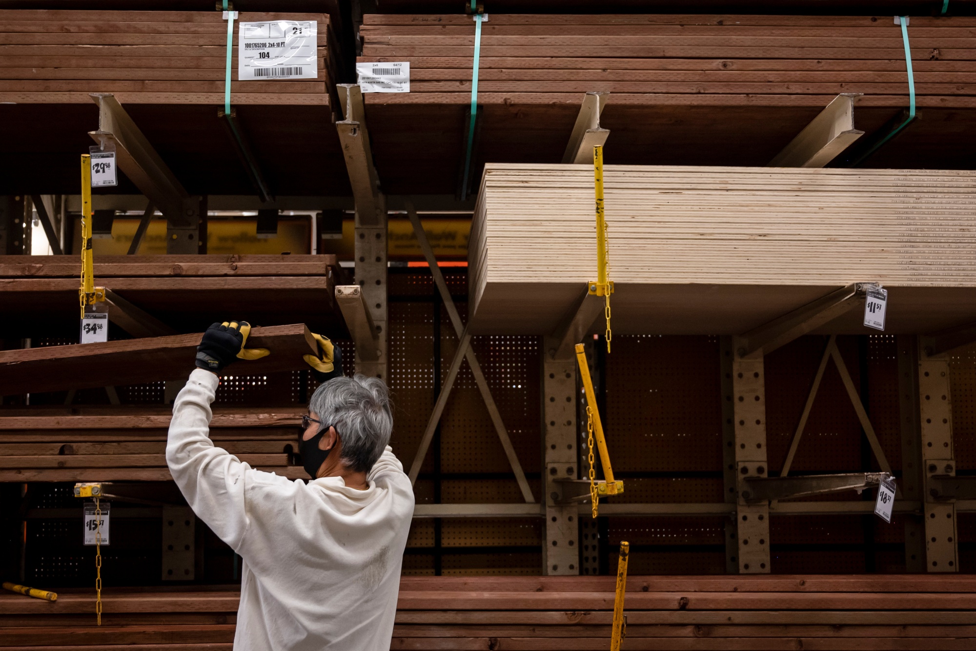 一位顾客在Home Depot商店挑选木材。摄影师:Josie Norris/Bloomberg### 气候影响