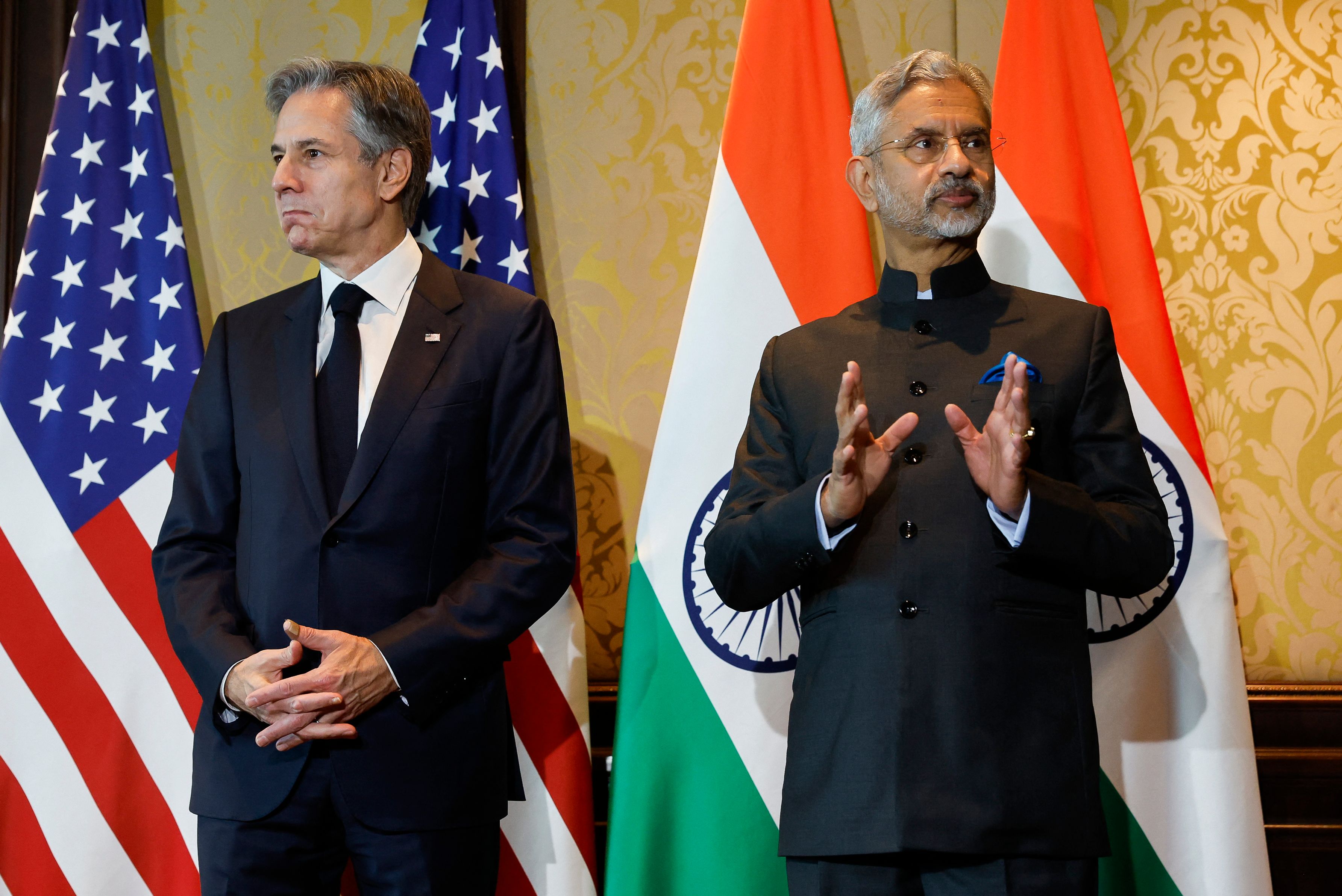 安东尼·布林肯(Antony Blinken)(左)与苏布拉曼扬姆·贾伊沙卡尔(Subrahmanyam Jaishankar)于11月10日在新德里合影。摄影师:乔纳森·恩斯特(Jonathan Ernst)/法新社/盖蒂图片社订阅印度版新闻简报,由梅纳卡·多希(Menaka Doshi)撰写 - 一份关于这个新兴经济强国、其崛起背后的亿万富翁和企业的内幕指南,每周发送一次。