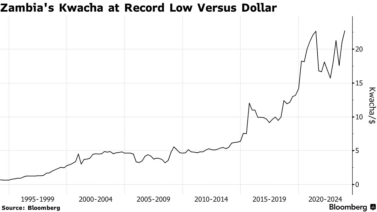 赞比亚克瓦查(ZMW USD)暴跌至创纪录水平 - 彭博社