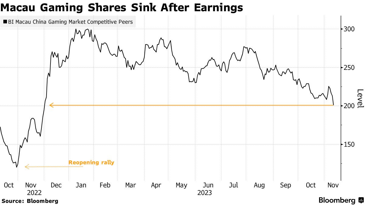 澳门赌场股票因盈利疲弱和中国经济阻力而下跌 - 彭博社