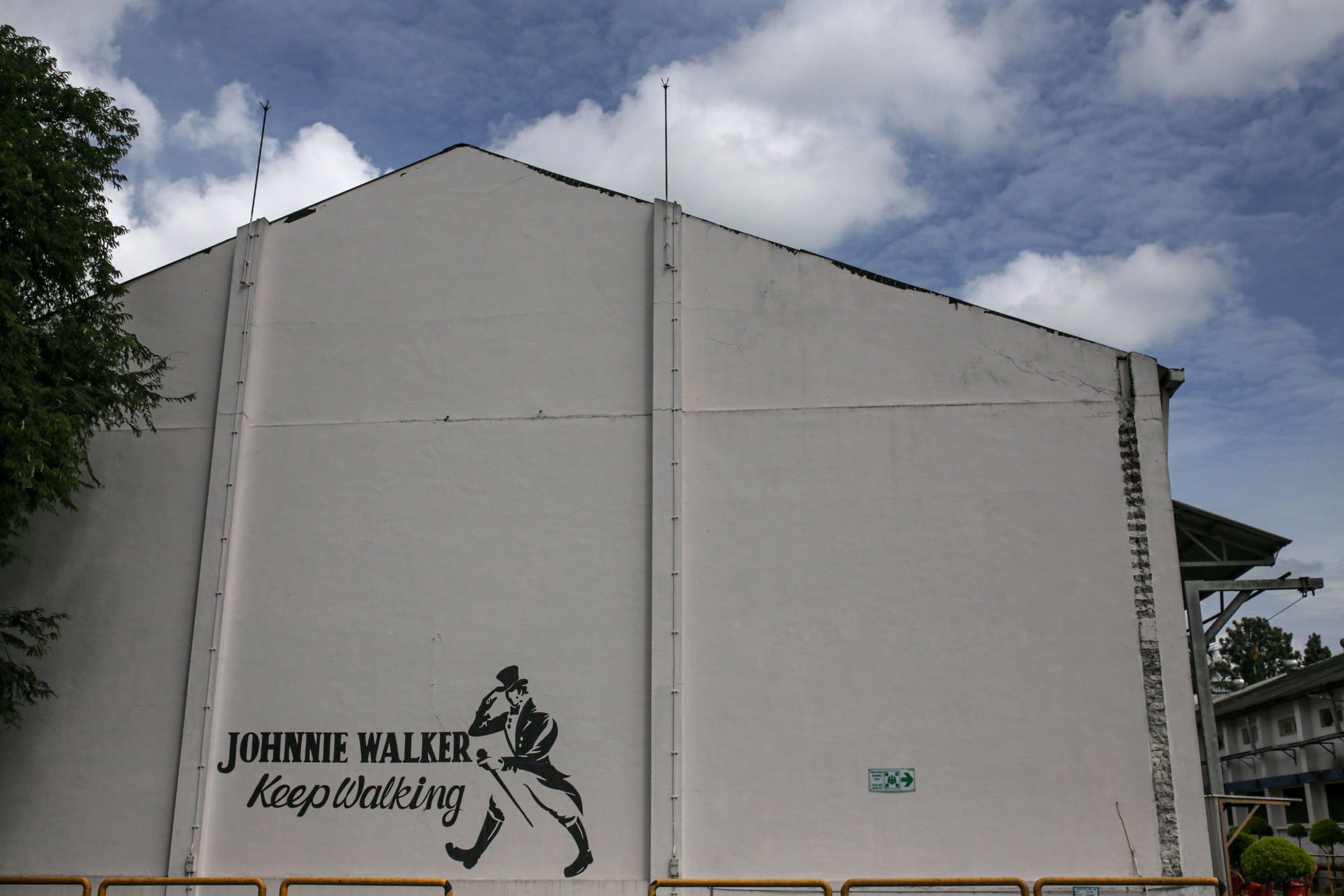 在帝亚吉欧股份有限公司的装瓶厂内,约翰尼·沃克(Johnnie Walker)的标识。