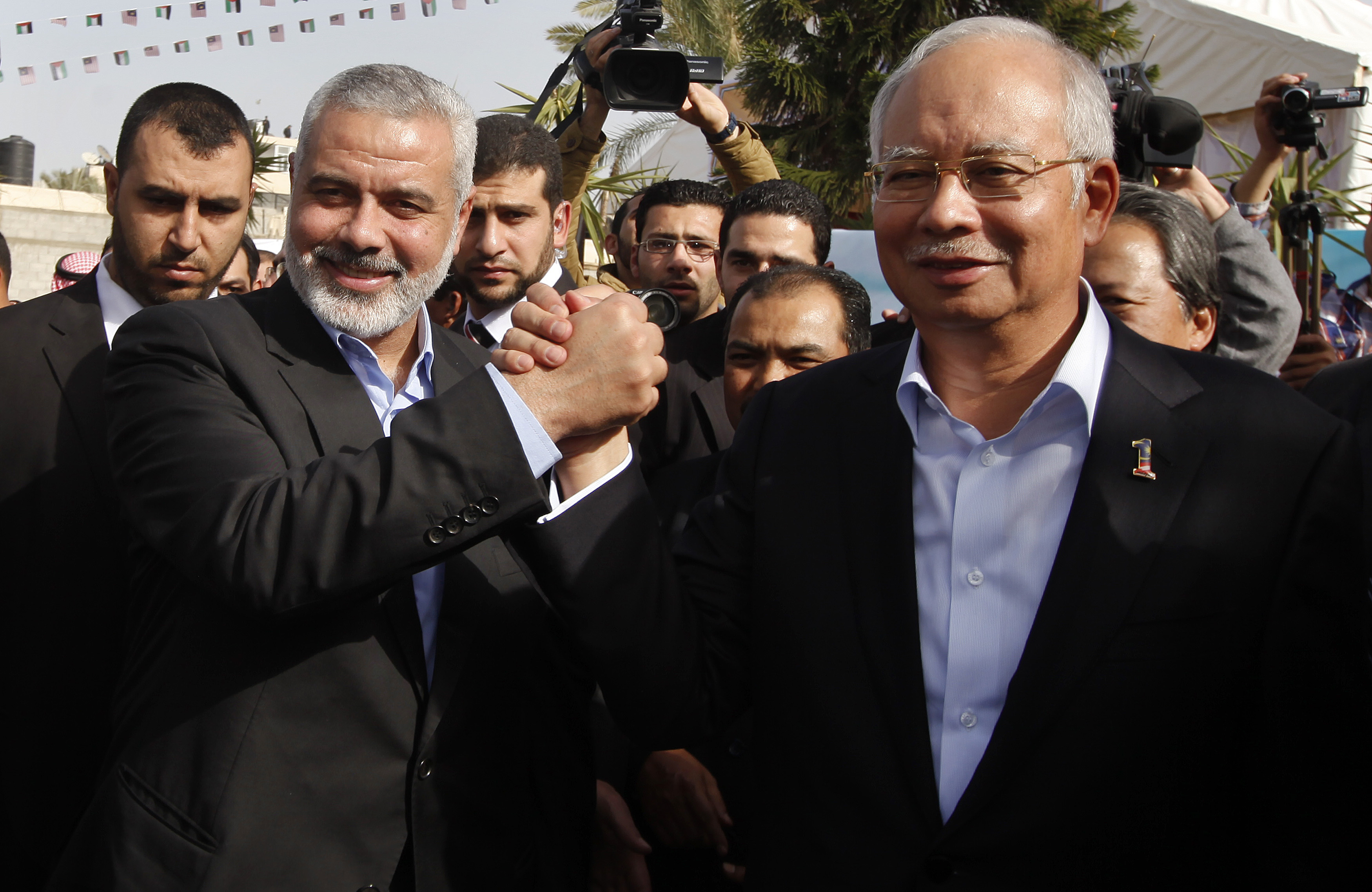 纳吉布·拉扎克(右)与哈马斯领导人伊斯梅尔·哈尼亚在2013年1月的加沙市。摄影师:Mohammed Salem/AFP/Getty Images马来西亚和巴勒斯坦当局保持着互设大使馆。2007年哈马斯控制加沙后,前马来西亚总理纳吉布·拉扎克是首批访问的国家元首之一。另一位前总理马哈蒂尔·穆罕默德在10月份发布了与哈马斯政治领袖伊斯梅尔·哈尼亚的对话片段,哈尼亚请求他帮助改变西方和以色列的叙述。安瓦尔还在X上发布称,他与哈尼亚进行了电话交谈,表达了马来西亚对巴勒斯坦人民的支持。