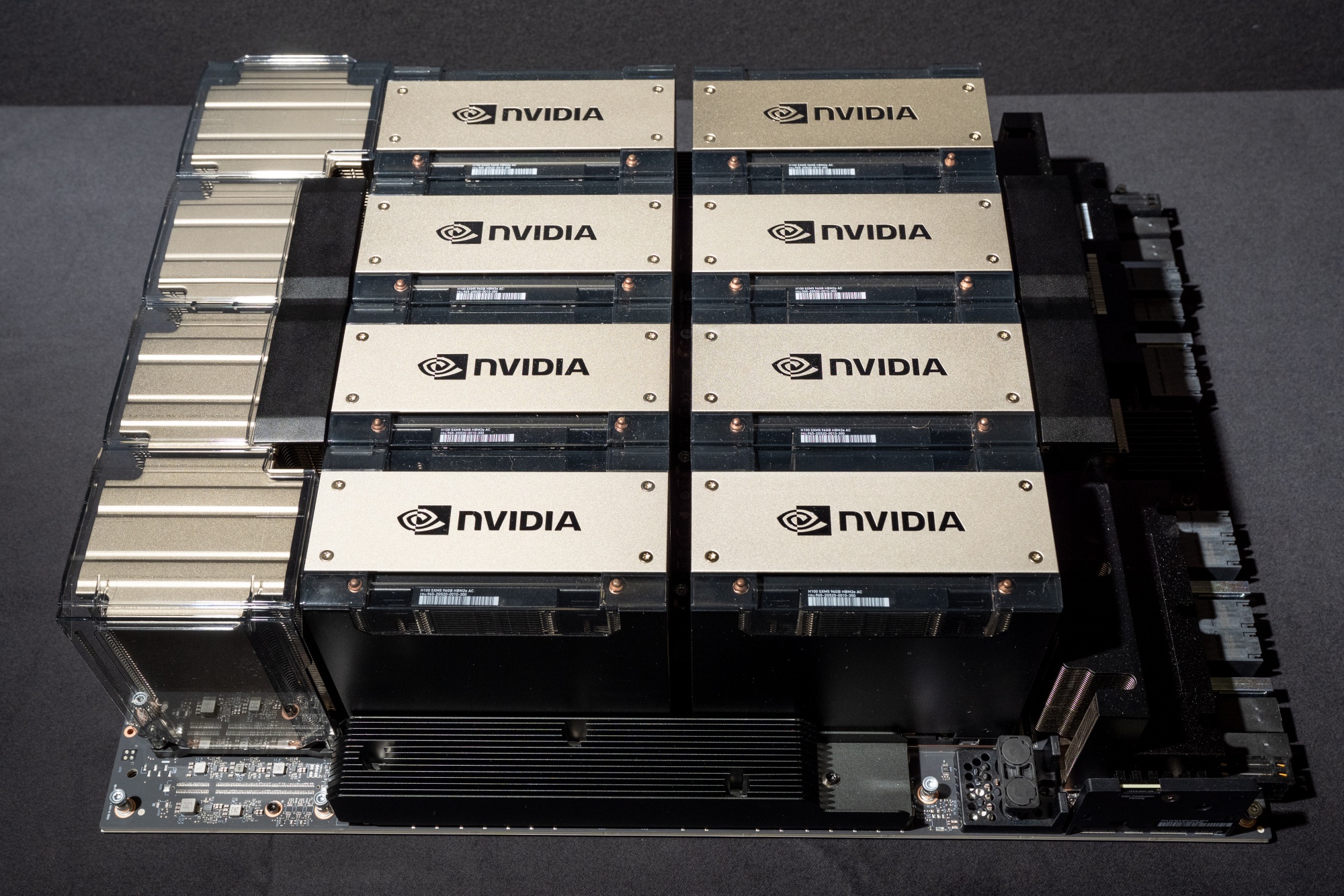 一台Nvidia HGX H100服务器在美国加利福尼亚州圣克拉拉的公司总部。