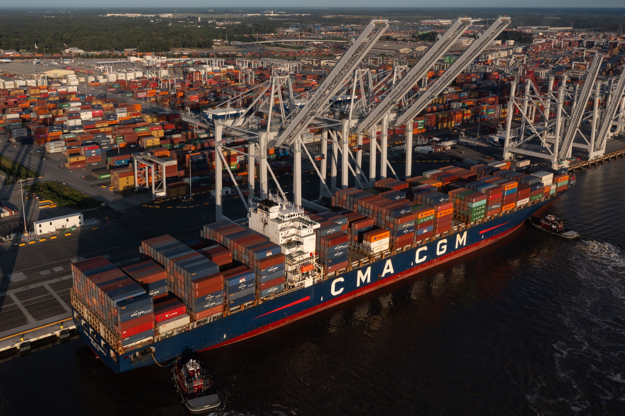 在乔治亚州萨凡纳港口,CMA CGM SA船上的集装箱。
