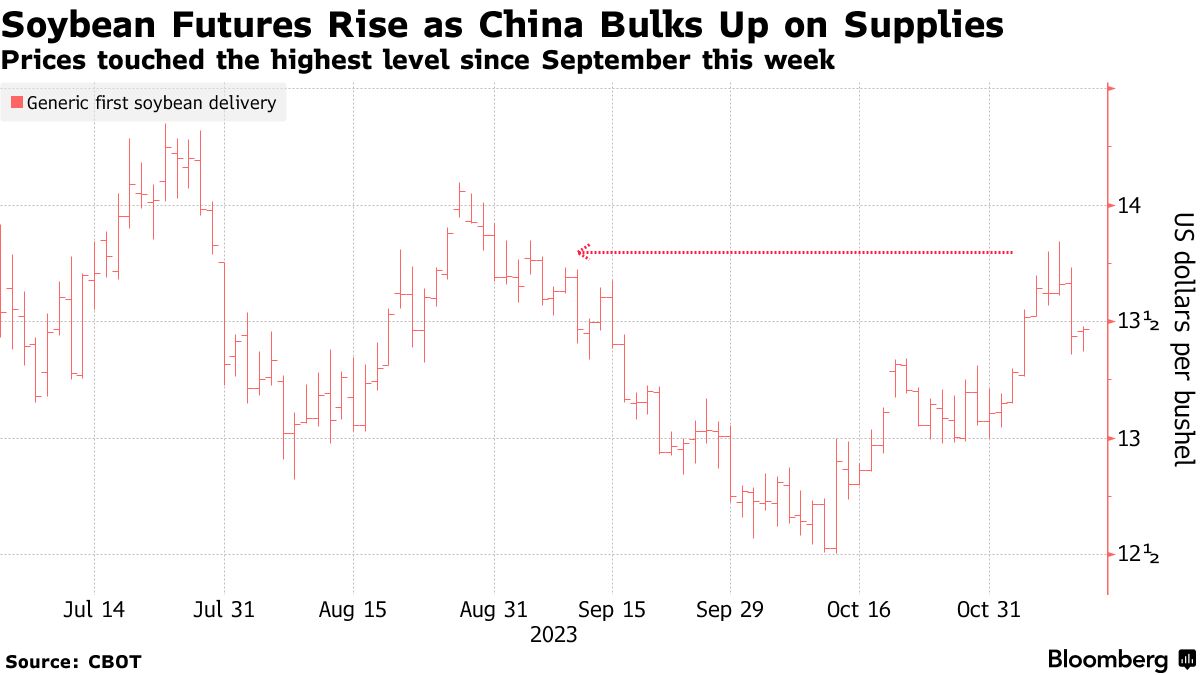中国对美国大豆供应的重新需求有助于支撑包括鸡饲料、食用油和可再生柴油在内的一系列商品的价格,使其成为短期内最看涨的农产品故事,Sanfeliu表示。本周早些时候,大豆价格触及了自9月以来的最高价。