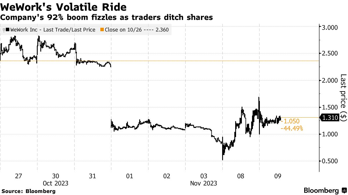 WeWork宣布破产后,股价翻倍 - 彭博社